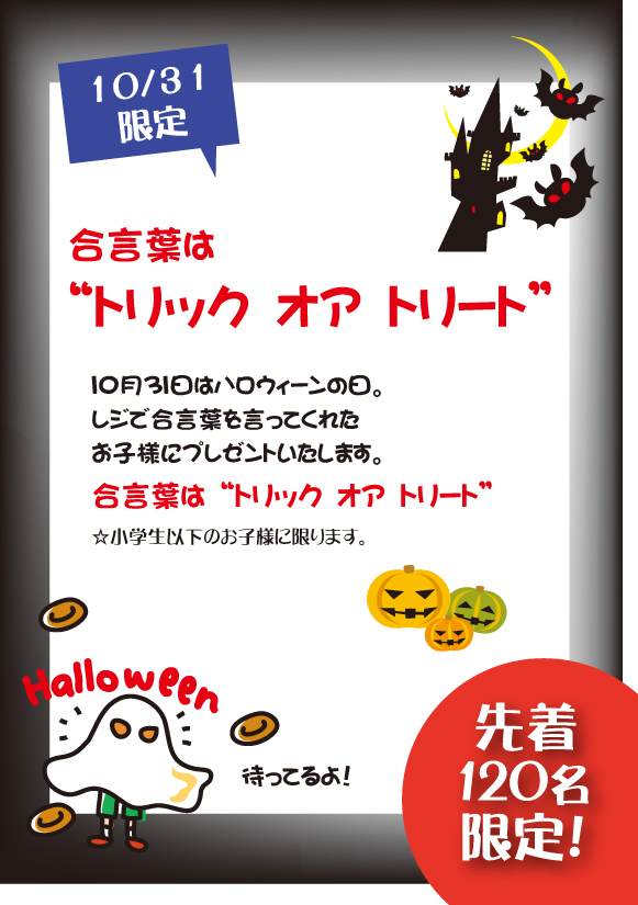2010.10.26◎10月31日限定★ハロウィーンのクッキープレゼント!