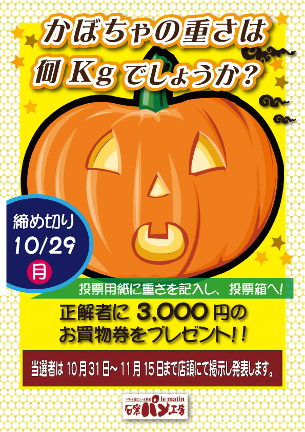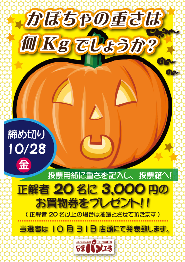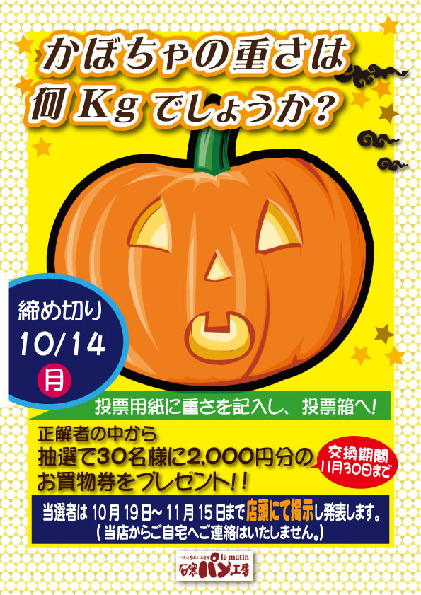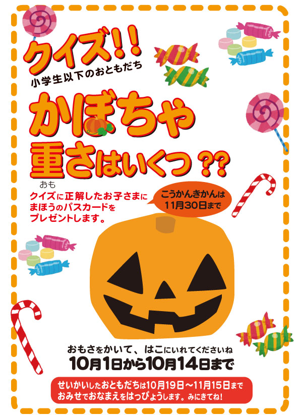 2013.10.03◎【ハロウィーン特別企画】かぼちゃの重さを当ててお買物券をGET!◆締切り10/14(月)