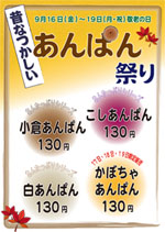 2011.09.16◎ル・マタン5店舗にてあんぱん祭り開催中!本日より19日までです★