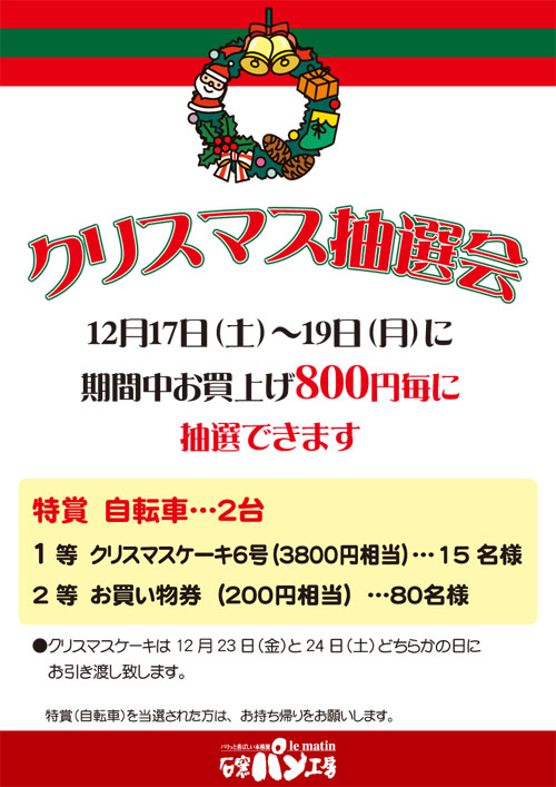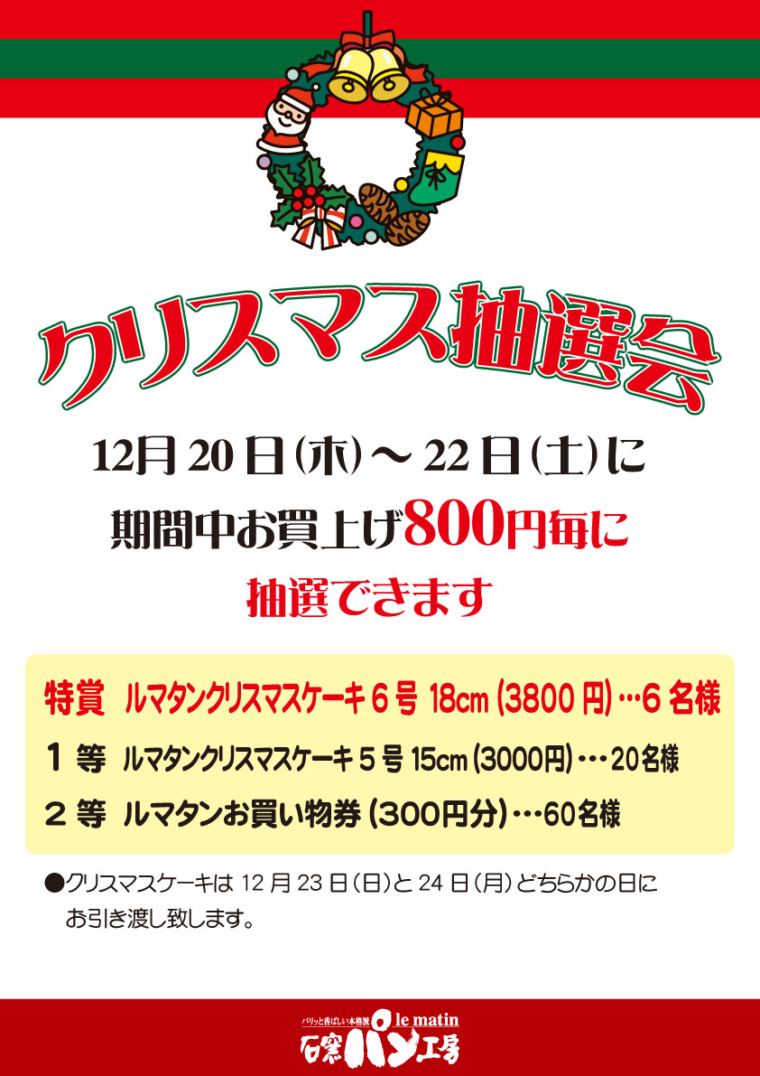 | 特賞 | ル・マタン特製クリスマスケーキ6号 | 20名様 | ||