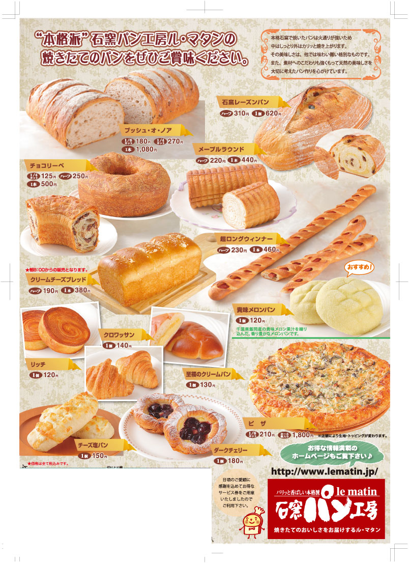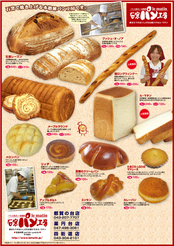 2009年8月27日いよいよ石窯パン工房ル・マタンの薬円台店がオープンしました。2009.09.01第18回カリフォルニア・レーズンベーカリー新製品開発コンテスト入賞