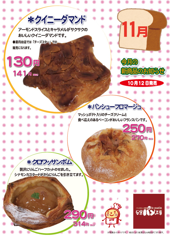 10月29日(火)より毎週火曜日を定休日とさせて頂きます。2013.10.12◎10月の新商品のご案内