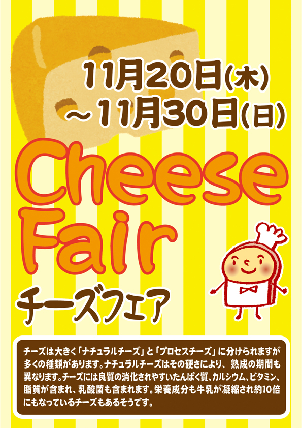 2014.11.17◎チーズフェア(11月20日~11月30日)のご案内