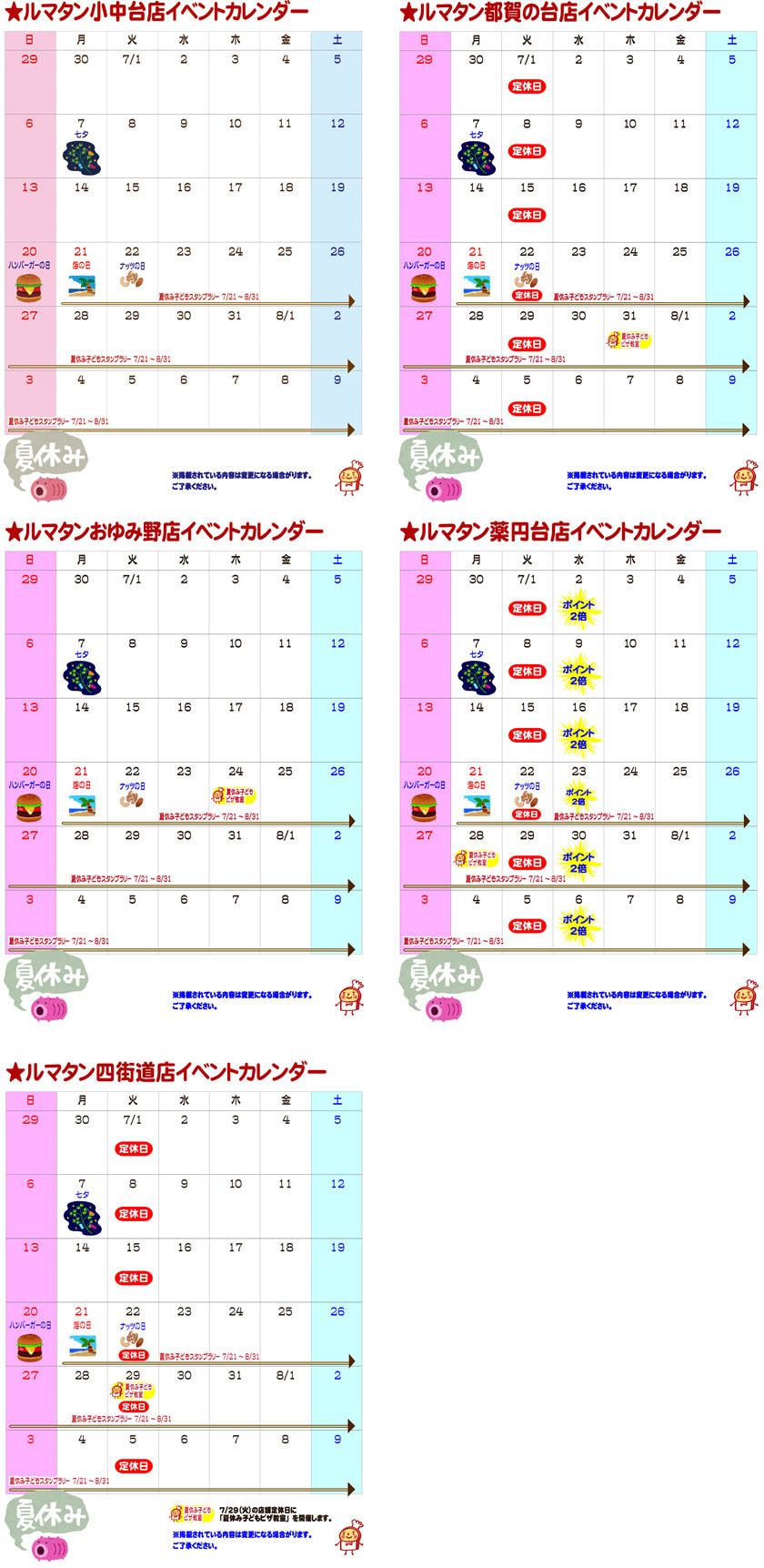 2014.07.05◎各店舗イベントカレンダーのご案内
