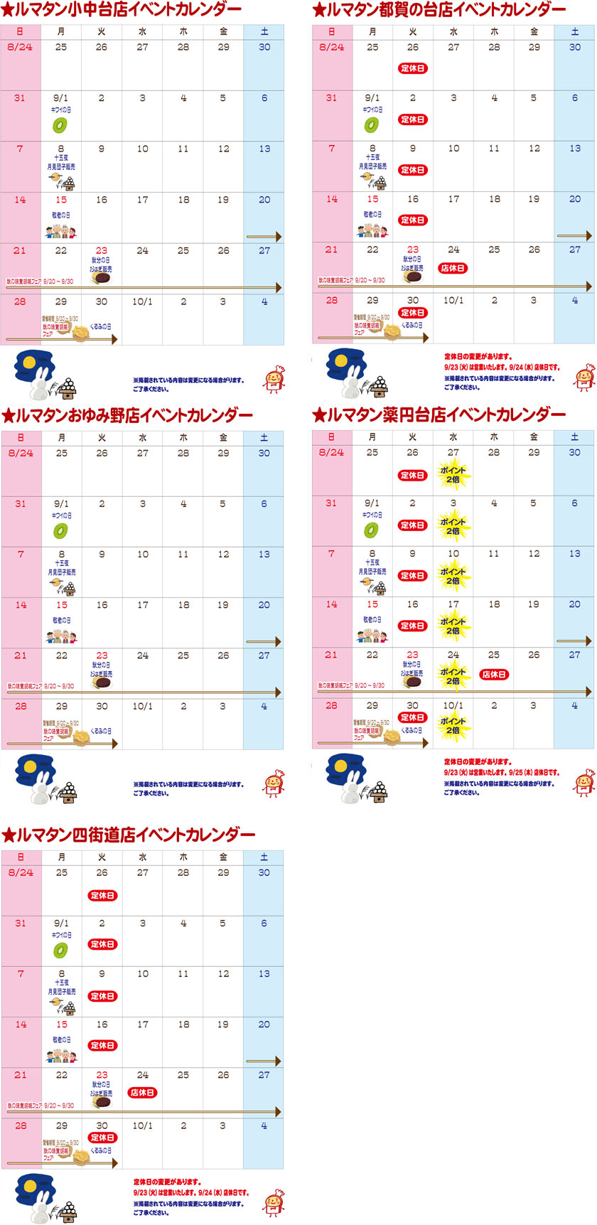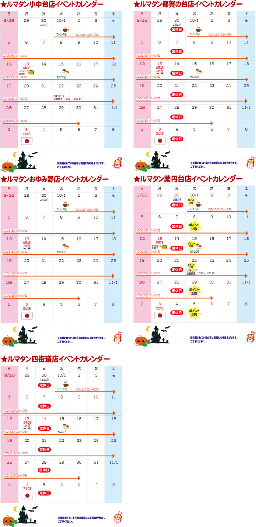 2014.10.15◎各店舗イベントカレンダーのご案内