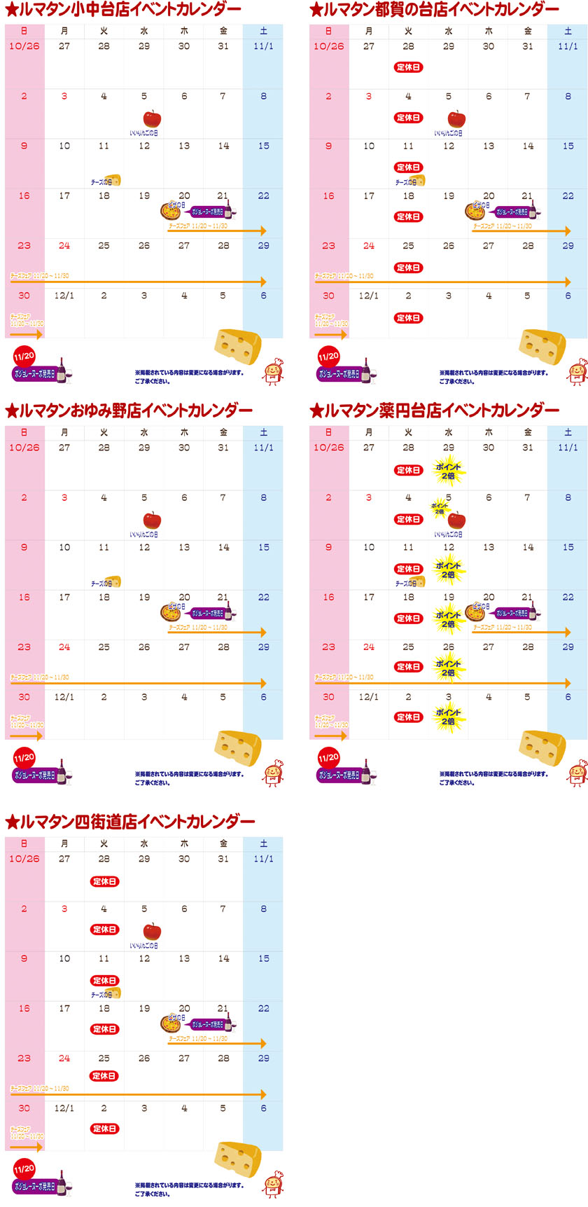 2014.11.05◎各店舗イベントカレンダーのご案内