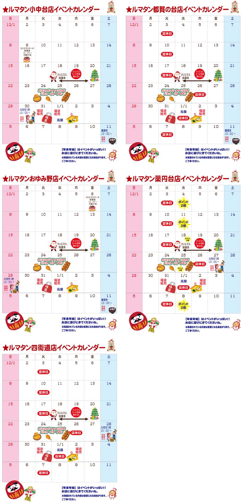 2013.12.05◎各店舗イベントカレンダーのご案内